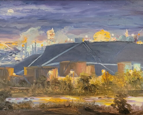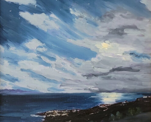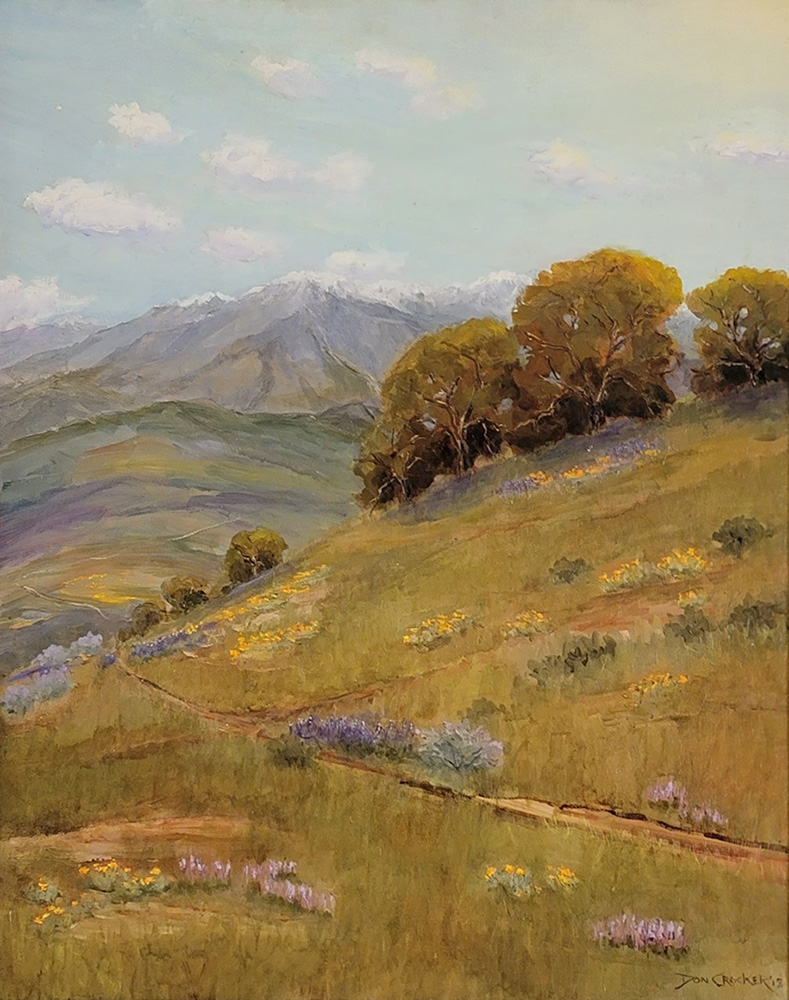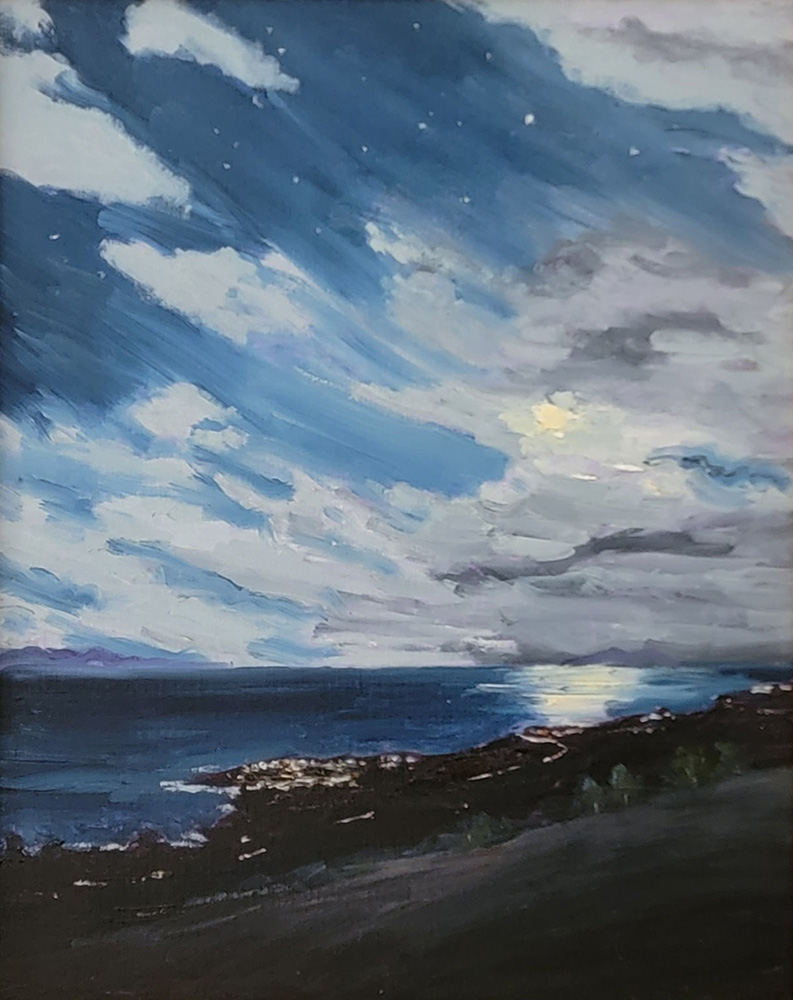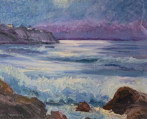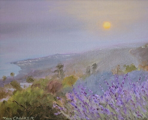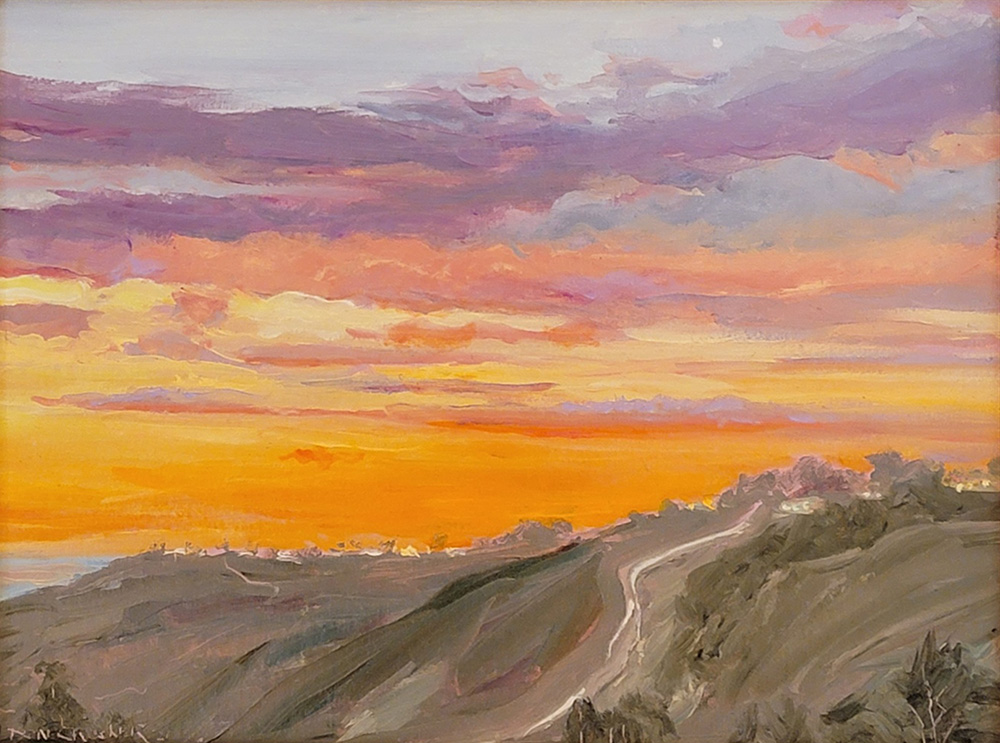 Don Crocker: Love of Place is a showcase of California local scene and recent experimental works in recognition of this painter’s many contributions to PVAC. The artist attended his first stained glass workshop at PVAC with local glass artist Gary Straub after moving to Palos Verdes in the early 1970s, and presented his large-scale stained glass windows in the inaugural exhibition at The Artists’ Studio. In 2000, he changed his focus to painting; attending workshops at PVAC and later immersing himself in the work of Russian Impressionist Ovanes Berberian and well-respected regional outdoor painters, from whom he learned his mastery of sunsets and the night sky. His nocturnal landscapes were celebrated in a 2014 solo exhibition, Don Crocker: Colors of Twilights, accompanied by a full-color catalogue. Don is an artist member of the California Art Club and a signature member of The American Impressionist Society.