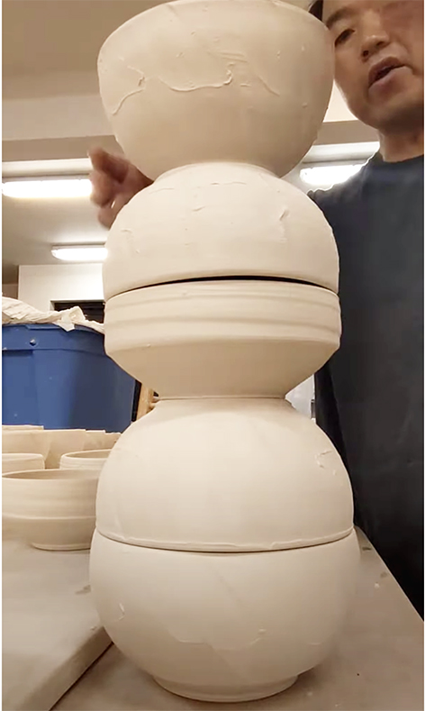 Ceramics instructor Roy Kunisaki demonstrates the proper way to load a kiln with pottery. Click image to view video.