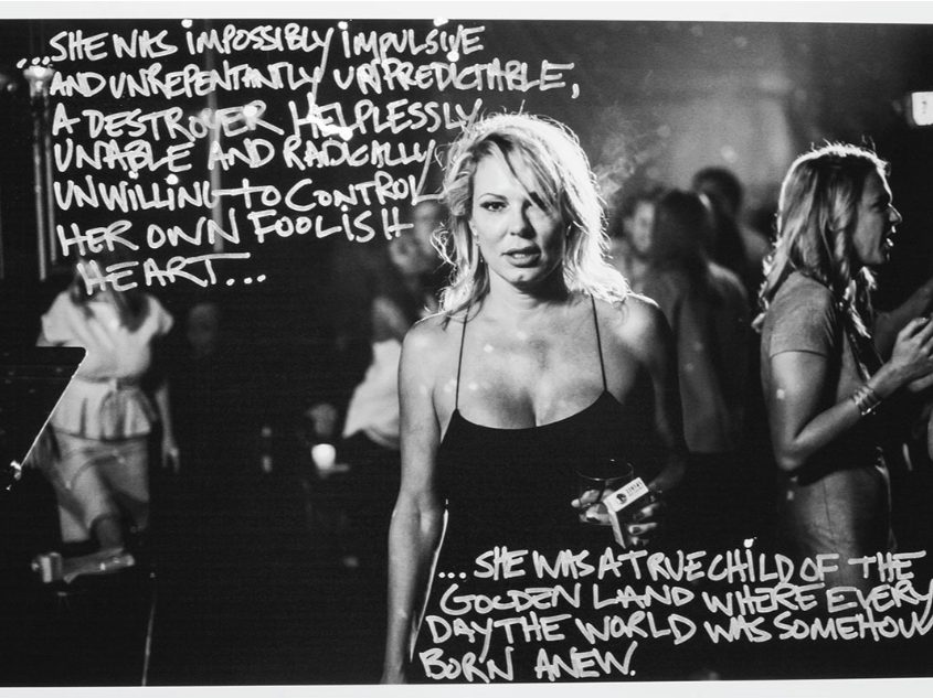 “Post-war film noir was inspired by hardboiled American crime fiction made famous by Los Angeles writer Raymond Chandler and expresses the cynicism of the period through themes of corruption, loss, and desire. Lord’s depictions of Los Angeles are filled with the deep shadows and low-key lighting characteristic of these films, but with a decidedly contemporary twist. With the addition of fragmented text and dialogue distilled from crime scene and criminal trial transcripts, Lord’s evocative images function as imaginary movie stills documenting an L.A. noir film that never was. The incongruity of text and image confounds expectations and challenges conventional constructs of storytelling. The resulting installation engages viewers to shape their own narratives while revealing the creative process of this singular writer and photographer.”