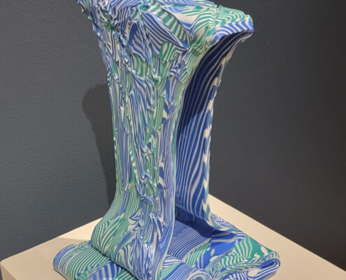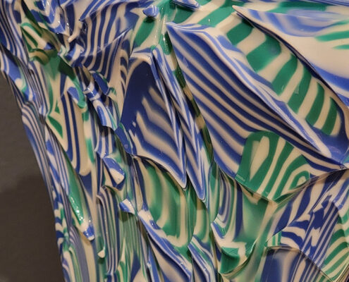 Price’s sculptures are records of action, movement, and moments of time that he captures in glass. Gestural, gravity-defying pieces like this example highlight the illusive qualities of glass and how it transforms from molten to solid. Price juxtaposes motion with stillness to create his static and perplexing, freestanding ribbons of glass.
