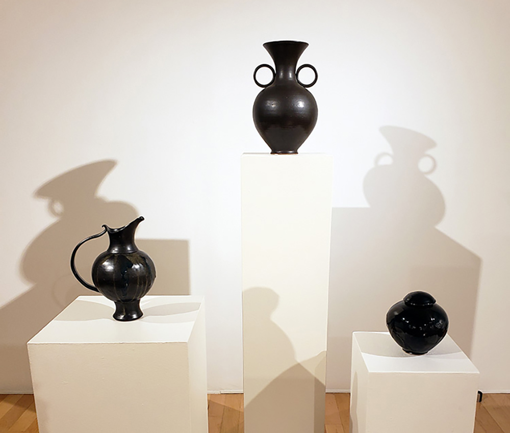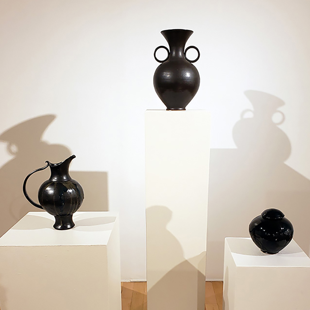Forming clay on a potter’s wheel is fascinating, but this is only the beginning of a long process. The piece generally needs to be refined, and then the fun begins. What to do with the surface? Hopefully, the artist has a vision as the piece is being formed or the form itself speaks to them. Handles? Carving? Added clay? Added colors? Or nothing, and just left to dry as-is before the first firing (bisque). Then more decisions are needed. What kind of firing? High fire? Raku, sodium, saggar, low fire as alternatives? Read more HERE.
