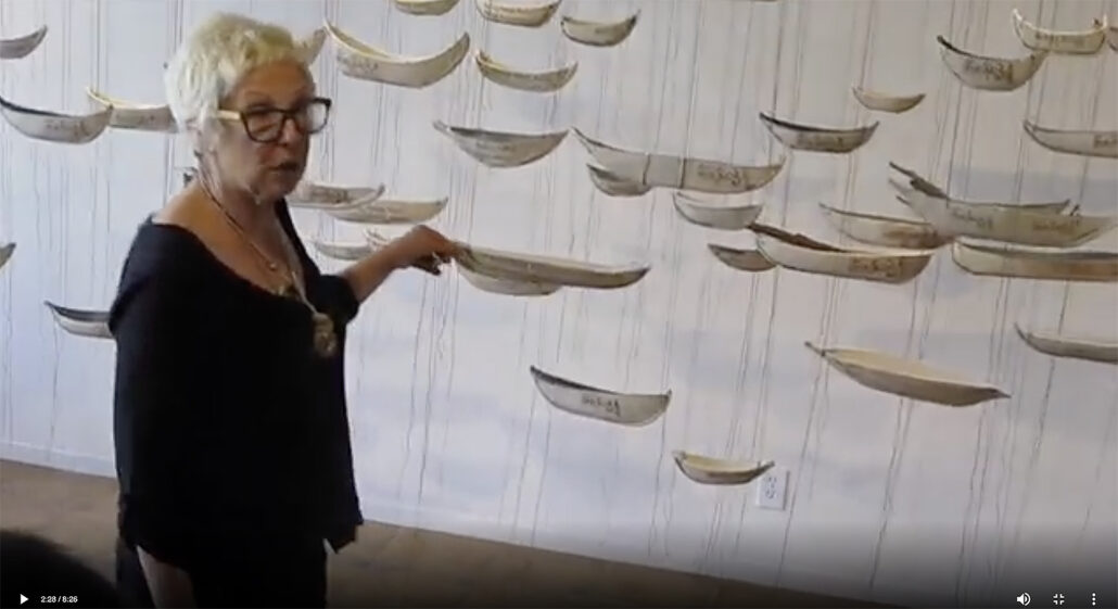 Carolyn LaLiberte, feeling the overload of communication and chaos of our contemporary world, struggles to find a place of spiritual clarity. LaLiberte explores thoughts and feelings through her imagination, asking questions that she knows cannot be answered. In her installation, Travelers Bound for Future Lives, she has created an imaginary world of floating ceramic boats. The 102 boats loom above, hanging from the ceiling in a mass of repetition. <SEE MORE>