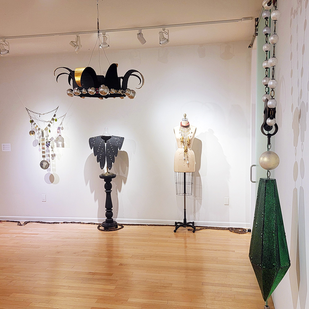 “Found objects are constantly seducing me. The allure of the discarded is the basis of my artist journey. My art is a testament to the evocative power of storytelling and jewelry’s ability to carry profound messages and reflect the complexities of our world. I see beautiful antique objects that have had a prior function and reimagine them into an elegant new beginning with new purpose. Exploring and combining these objects with contemporary materials creates an interplay of memory and presence. The political, mournful, spiritual monuments, and societal aspects that jewelry can symbolize are my inspiration. In each opulent and oversized sculpture and wearable piece, I encapsulate the essence of an icon or emblematic expression of its era. It is my wish that viewers and wearers alike will embark on their own personal journey of re-imagination. My goal is to provoke contemplation of the past while taking individuals to realms where the familiar becomes elevated and extraordinary.”
